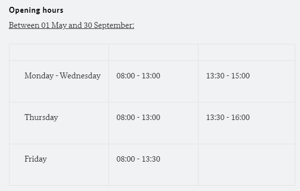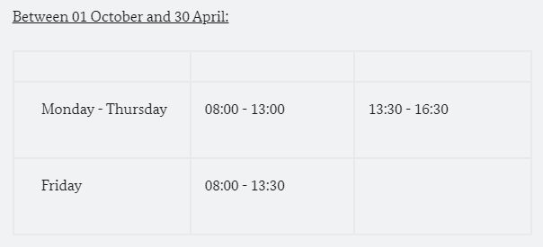 Monday – Thursday from 14:00 – 16:00 hrs.